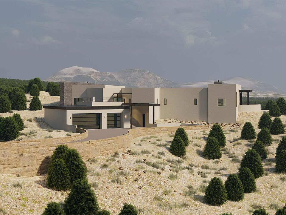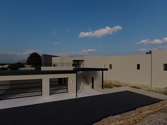 3 bedroom 2.5 bath to-be-built site specific contemporary home offers panoramic Santa Fe city lights and Sangre de Cristo mountain views. The architectural design respects the traditional historical vernacular of Santa Fe style while layering on a more contemporary interpretation with crisp corners and metal fascias. Entry opens to a large great room with a dramatic stone wall and a fire pit that steps down from the main level. Spacious open gourmet kitchen with high end appliances and center island. Down a hallway to the south are 2 guest bedrooms, a master bedroom suite and support spaces, all of which are elevated to emphasize the vista outdoors. Guest bedrooms offers multi-flex space to be used as a studio or office. Generously defined circular outdoor rooms off the great room and master bedroom are both oriented to the primary views and each has a cantilevered covered portal. Three-car garage plus interior elevator for access to the main level. Excellent north side location just minutes from the Santa Fe Plaza, Canyon Road and Museum Hill.