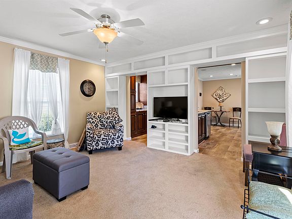 Move-In Ready! Welcome to 755 Route 9, F-6, located in the highly desirable 55+ community of Cape May Landing, just minutes from Cape May and only 3.2 miles from the beautiful Cape Mays beautiful beaches. This two-bedroom, two-bathroom home is available for year-round living and is a 2014 Sun Model F34 model (F-6) offers all the modern comforts you’re looking for. As you approach the home, you're welcomed by a spacious screened-in porch and an outdoor patio, perfect for relaxing or entertaining. Inside, the beautiful living area features stunning custom built-in shelving and crown molding throughout. The kitchen is a chef’s dream with granite look countertops, stainless steel appliances, a large center island, and abundant cabinet space, plus a cozy dining area. The primary suite is located at the rear of the home and includes a walk-in closet and a private en-suite bathroom with beautiful cabinetry and elegant finishes. At the front of the home, you'll find the second bedroom with a generous closet and a well-appointed full hallway bathroom. Additional features include Ceiling fans in the living room and bedrooms, Central air conditioning and heating, Private shed for extra storage, Nicely sized yard, Community pool access. This fully furnished, turn-key home is ready for you to move right in. Conveniently located just 3 miles from the Cape May-Lewes Ferry and Bay beaches of North Cape May, and only 8 miles to Wildwood, this location offers easy access to shopping, dining, breweries, Cold Spring Village, marina district, and more. Lot rent for 2025 is $545/month, which includes water, sewer, trash removal, road and common area maintenance, snow removal within the community, and street lighting. For community details and the required Tenant Application, please refer to the associated documents under "Cape Landing Information."