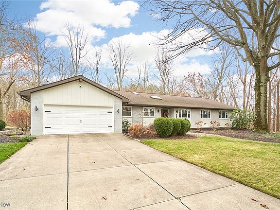 Gorgeous, updated, and move-in ready, this elegant 4–5 bedroom RANCH offers effortless one-floor living on a peaceful 1.5-acre wooded retreat. The refined open layout seamlessly connects the living and dining areas to a striking chef’s kitchen appointed with quartz surfaces, stainless appliances including double ovens, and a fabulous oversized island ideal for gathering and more! The vaulted family room (currently used as an office) invites with its beamed ceiling, wood-burning fireplace, and expansive doors opening to the patio. A four-season sunroom—with walls of windows and wood plank ceiling—invites year-round enjoyment of the natural surroundings and provides direct access to a deck overlooking the tranquil landscape. The bedroom wing includes 4 bedrooms (1 currently used as another office). Owners suite offers custom walk-in closet, a spa-quality bath with soaking tub and separate shower, and private access to the deck. The secondary bedrooms share updated, stylish hall bath with double vanity. Powder room and first floor laundry complete the main level. Downstairs, the expansive finished lower level adds over 1,200 sq ft, including a large recreation area and a flexible bonus room with walk-in closet—perfect for a fifth bedroom, gym, studio, or office. Updates throughout including new windows, 2 new sliders, flooring (including epoxy garage floor), lighting, kitchen, baths, EV charger, H2O heater landscaping, patio, walkways and Leaf Filter gutter system. Enjoy a rare combination of modern comfort and a truly immersive natural setting. Steps from Sand Run Metro Park and minutes from Nature Realm and CVNP, it is a nature lover’s paradise in an awesome location with every modern convenience. Call today!