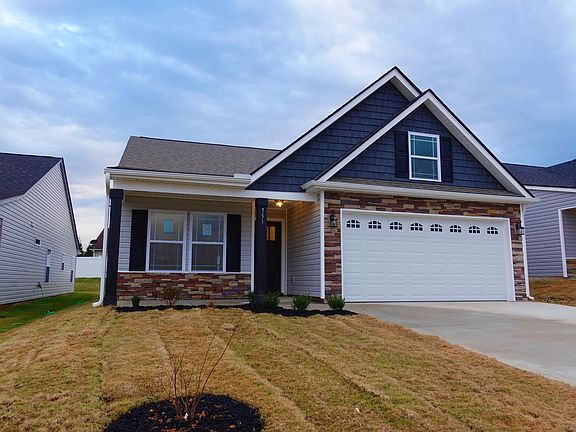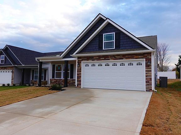 his 3br/2ba open floor plan is very open and bright. Large living room with smaller sitting/dining off the side. 10' Ceilings, crown molding with rope lighting, and corner gas fireplace with tv niche. The kitchen is equipped with granite counter tops, black whirlpool appliances, island, and plenty of cabinet space. Master Bedroom has tray ceiling with rope lighting and walk in closet. Enjoy the sunset on your 12x12 Covered Patio! Stone accents and covered front porch give this home great curb appeal. Brand new Subdivision with Convenient access to I-26 and I-85.