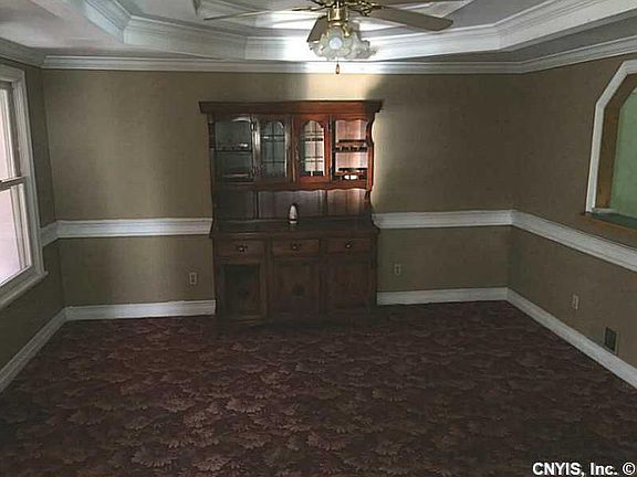 A great place to live! Village home situated on half an acre, around the corner from DeRuyter Lake, a quick drive to Cazenovia and Syracuse. Formal dining room features coffered ceiling, chair rail and pass-thru window to the eat-in kitchen, living room, office (or additional bedroom), enjoy your morning coffee or the evening paper on the enclosed porch, huge yard for gardening and play, garage and more. See for yourself how affordable home ownership can be!