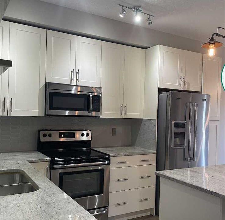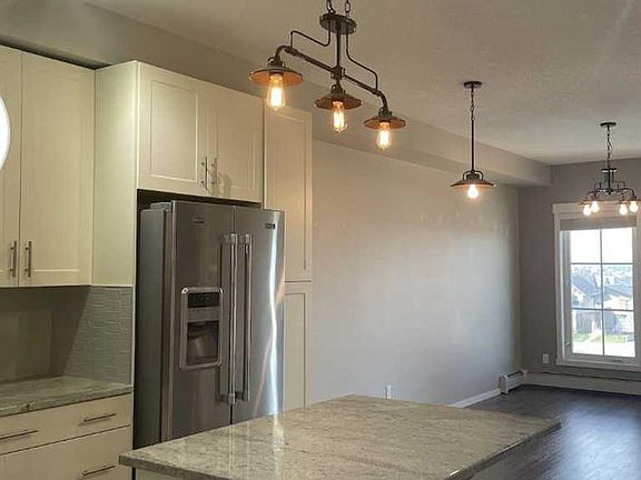 Welcome to Copperfield Park II This open floor plan 1 Bed 1 Bath unit has granite countertops/island in the kitchen with stainless steel appliances. The spacious living room leads to your balcony that has a beautiful mountain view. The primary bedroom has a walkthrough closet with organizers and shelving. There is insuite storage, one titled parking stall an one assigned storage unit