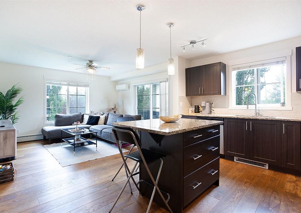 Welcome to 5214–755 Copperpond Boulevard SE in Calgary—a well-designed 2-bedroom, 2-bathroom condo offering 908 sq ft of functional and stylish living space - the LARGEST unit in this building. This bright, open-concept unit features a modern kitchen with granite countertops, stainless steel appliances, and a central island that flows into a spacious living and dining area—perfect for relaxing or entertaining. The layout includes a welcoming foyer, in-suite laundry, and a private balcony ideal for summer evenings. The primary bedroom boasts a walk-through closet leading to a 3-piece ensuite, providing both convenience and privacy. The second bedroom is well-sized and located near the main 4-piece bathroom, making it perfect for guests, roommates, or a home office. Titled underground parking ensures security and comfort year-round. Situated in the vibrant community of Copperfield, residents enjoy access to scenic parks, walking paths, ponds, playgrounds, and nearby schools. The area is family-friendly with quick access to shopping, transit, and major routes like Stoney Trail. Whether you're a first-time buyer, downsizer, or investor, this move-in-ready condo offers comfort, convenience, and community.