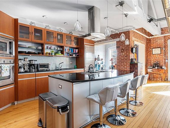 Welcome to this formidable top-level Loft located at 755 Westminster Street. The timeless 755 Lofts are located on the West Side of Providence and are a perfect landing spot for any city dweller looking for a mix of comfort and style. This oversized loft is not only spacious, but also extremely bright and sunny. The unit is sound-proofed, and the building even allows pets! The unit features 20’ cathedral ceilings with skylights, an open floor plan and your own laundry room inside the unit. Throughout the loft you’ll find exposed brick, maple hardwood flooring and stainless-steel appliances. Relax and unwind after a long day in your oversized bathtub or cuddle up by the cozy and convenient gas fireplace. You'll be stunned by an impressive view of the city when you see the sun setting from your own private balcony. This unit features bi-level lofted living, two bedrooms and a full bathroom on each level. Move in with ease with an elevator right down the hall from your door! This will not only make your move-in less daunting, but it helps with daily tasks like carrying in groceries or taking out the trash. Downstairs you can utilize the bike room and your own personal and secure basement storage. Outside you can chill and unwind in the exclusive private patio, and you will have two assigned parking spots right outside the back doorway. Close to cafes, restaurants, shopping, downtown, Federal Hill, Amtrak and I-95.