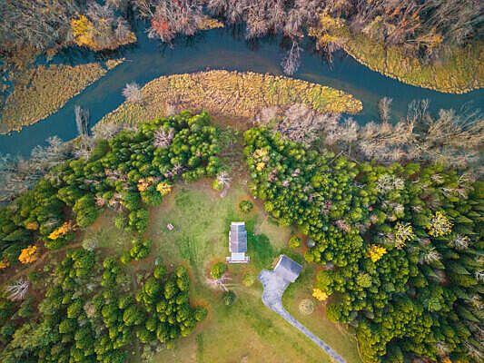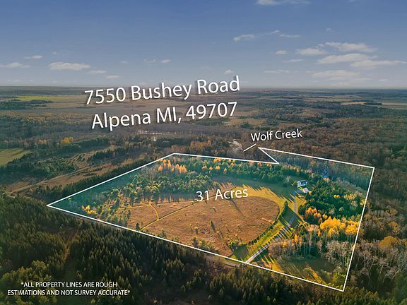 Over 31 acres with meandering waterfrontage on Wolf Creek. This is an unconventional floor plan with 1 designated bedroom on the entry level and space for 1-2 more. Upper level offers a great living space with a very open floor plan featuring a Kitchen, dining, living room space, 1 bathroom and a large finished upper sun room that has multiple uses. The entry level offers 1 designated bedroom and space for a second plus a bonus room area and laundry. You will also love the 3 car garage which also has space for a workshop. This parcel offers Up North privacy, river frontage and acreage. Paved driveway and only about 1.5 miles of a gravel road.
