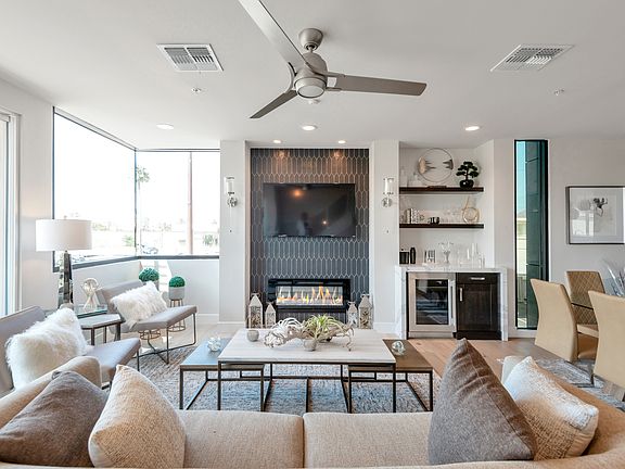 This condominium at Miller Square of Scottsdale is filled with high-end finishes and green features that include energy-efficient HVAC, programmable thermostats, energy-efficient lighting, dual-pane windows, washer/dryer, ceiling fans, and more. Security includes private elevator, door camera, and security system.