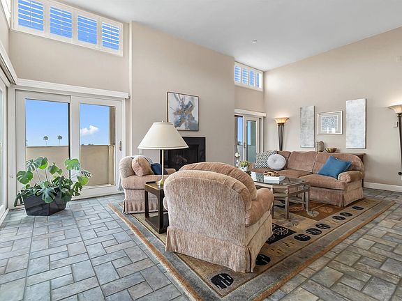Experience breathtaking sunsets in the heart of La Jolla Village! With panoramic ocean views from the largest and most desirable unit in the community, this expansive single-level, open-layout residence seamlessly connects the living, dining, and kitchen areas for effortless enjoyment and entertaining. Unwind in the cozy living room, complete with a fireplace, two private balconies, vaulted ceilings, and abundant natural light. The gourmet kitchen is a chef's dream, equipped with granite countertops, ample cabinetry, and a coffee bar. The master suite has stunning water views, plenty of natural light, and extensive closet space. The generous second bedroom includes more views, an en-suite bathroom, and a substantially sized closet. The community offers top-tier amenities: gated and secure complex, elevators, water and gas included, rooftop deck with ocean views, brand new community room, hot tub, fitness center, and on-site property manager. With two tandem parking spaces and a storage locker, this move-in-ready condo is ideal for year-round living, a second home/vacation retreat, or an investment property. Embrace the vibrant La Jolla Village lifestyle with beautiful beaches, shops, and restaurants all within walking distance. Discover San Diego coastal living today!