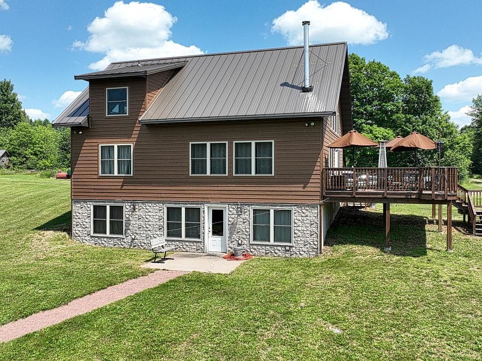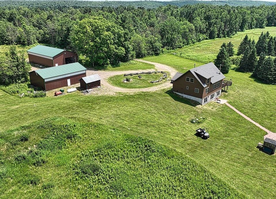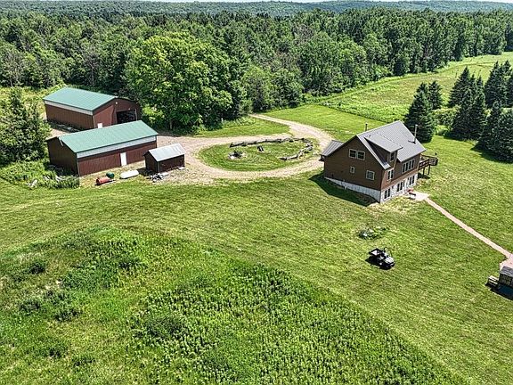 Welcome to your dream retreat nestled at the end of a dead-end road with over 7200 feet of frontage on the East Fork of the Chippewa River! The home features a warm cedar ceiling, open floor plan, granite countertops in the kitchen, spacious living areas, and large deck overlooking scenic river which has excellent walleye fishing. Set on over 236 acres of rolling, wooded terrain, this property is a haven for nature enthusiasts. Explore extensive trail systems, multiple food plots, 7 hunting stands, private shooting range and so much more. Frequent visitors include elk, deer, bear, turkey, coyotes, bobcats, wolves and more. Additional highlights include 2 large pole buildings, wood shed, cozy chicken coop, excellent well water. Located just 7 miles from nearest fire station! Call today!
