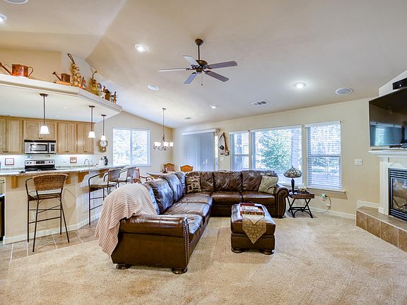 Beautiful, modern custom home with serene privacy of the forest! Builder went all out for own home w/ upgraded insulation, vaulted ceilings, gas fireplace w/ blower, recessed lighting & speakers, awesome open kitchen w/stainless appliances, hot water re-circulating system, picturesque windows, finished oversized 3-car garage + big RV slab parking with waste dump & power! Paved maintained road too!