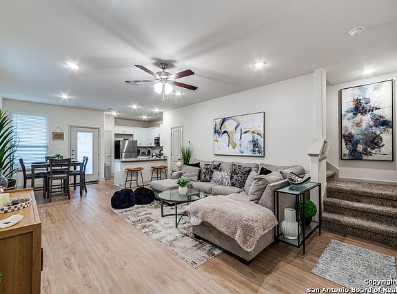 This beautifully 3-bedroom, 2.5-bath home in Cinco Lakes community off 1604 and 90. showcases a modern open-concept design, seamlessly connecting the living, dining, and kitchen areas to create a bright, airy atmosphere. The stylish kitchen comes fully equipped with stainless steel appliances-including a refrigerator, stove, microwave, and dishwasher for added convenience. Some furniture included. This home is truly move in ready offering a hassle free move.