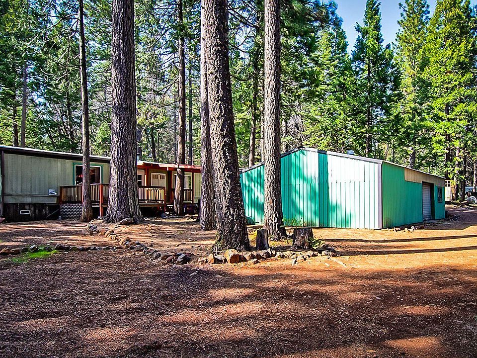 Enjoy the feeling of a mountain escape, this home is nestled in the pine trees and features 1.29 acres, 2 bedrooms, 2 bathrooms, 1,344 SqFt with a large detached shop. Additional highlights included fireplace, a pellet stove, two living areas, covered front porch and a large back deck for entertaining. Low maintenance yards, park like setting and a garden area. Fully fenced, and plenty of room for all your toys.