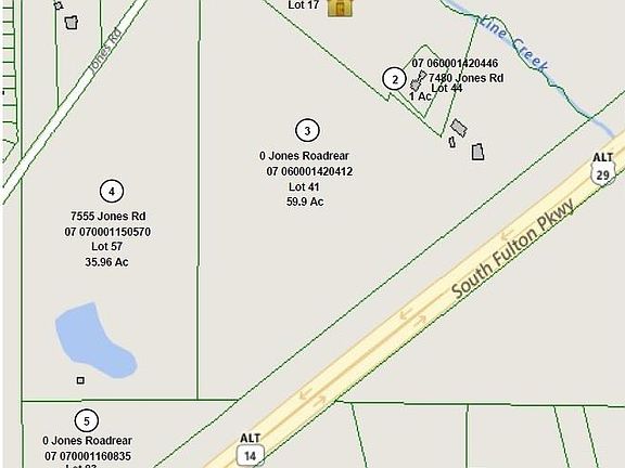 IMPRESSIVE 121 ACRE FAMILY HOMESTEAD UP FOR SALE! Approx 3,675' OF ROAD FRONTAGE ON S FULTON PARKWAY & 1,500' of ROAD FRONTAGE ON JONES RD - Beautiful site in between the frontage, ideal for commercial or enjoy a great dose of country living, just minutes to Serenbe, Atlanta & Airport. 5 parcels make up the acreage & home w/ lots of character ready for your touches. Entirely Fenced, Hay Barn, RV Shed, Equipment Workshop, old Log Cabin. Gently rolling pastures, wooded areas & Working Farm w/ cattle & beautiful picturesque Pond. 5 Parcels listed all sold together: (#2)07 060001420446 (1 Acre with house); (#1)07 060001420172 (12.89 Acres); (#3)07 060001420412 (59.9 Acres); (#4)07 070001150570 (35.96 Acres); (#5)07 070001160835 (11.55 Acres)