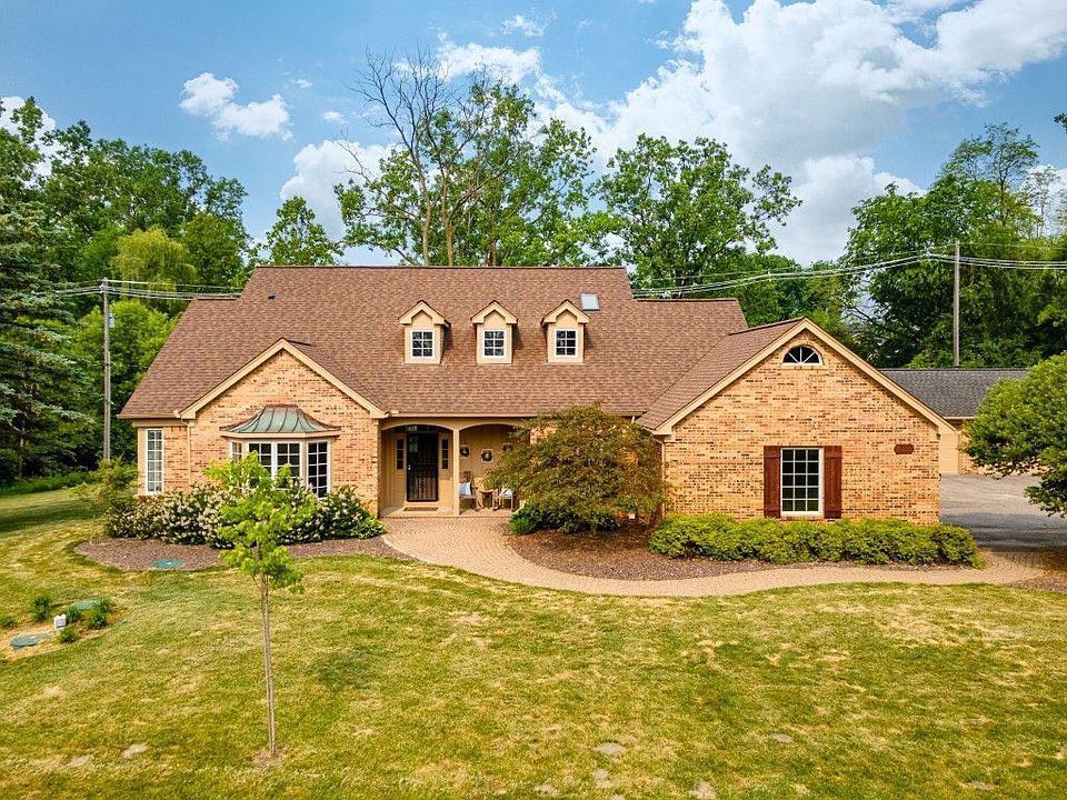 If you are looking for peace and tranquility look no further! This well maintained 4 bedrooms and 2.5 bathroom Cape Cod with 6 car garage is situated on a quiet private 2 acre lot, Breathtaking views of the natural spring fed pond that stays very clear, cool and has consistent water levels all year. Be sure to have your fishing pole and kayak ready! Main floor Primary bedroom with en suite and large walk in closet along with a sitting area to take in the fantastic views of your backyard. Brand New super gorgeous open kitchen with quartz counters, custom cabinets, stone backsplash, and a huge island for gathering and entertaining along with a breakfast nook, all new appliances including double oven with airfry, built in Fisher Paykal refrigerator and dishwasher, gas cooktop and beautiful porcelain tile flooring. Flows directly into the sunroom great for sipping your morning coffee and enjoying your splendid views of the backyard and pond. Additional main floor rooms, Great room with vaulted ceilings and fireplace for cozy family nights, Dining room, study/ Library all with solid Hickory 3/4" flooring throughout the whole house.