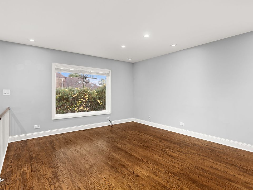 Located in the highly sought-after Niles 219 School District! This beautifully rehabbed end unit is filled with natural light from three exposures. The ground level offers a family room with a fireplace and access to a private patio, plus a large green space by the front door. The living room has hardwood floors, and the updated kitchen features maple cabinets, granite countertops, and stainless steel appliances, with access to a Juliet balcony. The second living space on the main floor can easily be converted to a third bedroom. Upstairs are two spacious bedrooms with great closets. The lower level includes a laundry room and private access to an attached garage with extra storage. Move-in ready! Move in fee: $450 per person (non refundable)