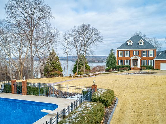 Welcome to this amazing home with 4,043 sqft of living space in the main house and an additional 1,300+/- in the detached guest/pool house. Main home offers 4 bedroom/3.5 baths and sits on 4.17 acre property with panoramic views of the Tennessee River, creating a serene backdrop for everyday living. Sunrises here are spectacular and can be enjoyed from breakfast room or the spacious veranda on main floor. The circular driveway leads to front of home and also extends to guest/pool house/tennis court area. Entering the main house you will notice the impressive wood banister. Additional hardwood floors has been added and refinished for a modern feel throughout main level. Cozy study has been opened for easy access to the family room. This open floor plan has been created to capture the water view from the back windows. The new kitchen is spacious with plenty of storage, butcher block countertops and new appliances. Beverage bar is convenient for entertaining or just a simple cup of coffee. You will find nine foot ceilings located on main and second levels along with decorative moldings in some areas. Two car main garage is spacious and offers access to kitchen. Second level primary bedroom offers custom built in cabinetry, large walk in closet and veranda with more amazing views. Primary bath includes custom shower, double vessel sink, soaking tub and more custom built-ins. Second level also offers guest bedroom with en suite bath and access to playroom/storage/closet area. Laundry room is located on this level for convenience. Two additional guest rooms on third level with walk in closets and spacious full bath. Take a stroll from front driveway down the stamped concrete sidewalks leading to amazing pool area. Plenty of room and parking for grand parties and enjoy level expansive lawn for sporting activities. The pool house is the highlight, featuring 1300+/- sqft of space including kitchen and full bath on main level and upstairs loft that could be used for hosting guest, an art studio, office or even a teenage bunk room hangout. Huge garage/workshop offers storage for cars, toys or possibly a boat. More covered storage on back of garage with stairs leading to upstairs loft unit. Grab a racket and enjoy a game of tennis with lighted tennis courts, perfect for both day and night play. Property is located minutes from Chester Frost Park with public ramp to launch your boat or jet-ski. Also close to local marinas, shopping, restaurants and 25 minutes to downtown Chattanooga. Schedule your private tour of this amazing place!