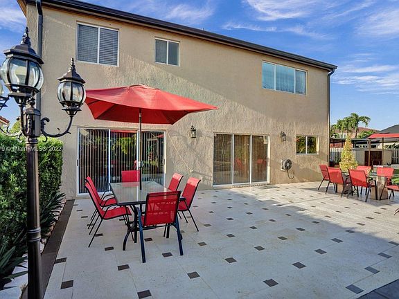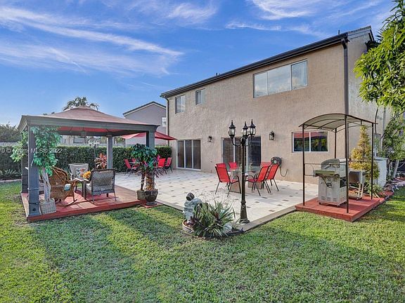 Beautiful West Kendall 4 bedroom House located in a quiet and private cul de sac , 2,135 SF living , 8,521 lot with space for a pool , built in 1993 consists of formal dining, formal living, family room, semi converted garage that can be used as a den/office/ music room or easily converted back . 2021 roof , Kitchen has eat - in area, granite countertops, stainless steel appliances, double oven, family room, high ceilings, very nice over sized outdoor patio with beautiful landscaping to enjoy and entertain with gazebo, fruit trees (coconut, mango & papaya) and a shed .