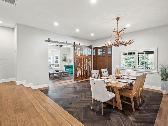Discover a slice of this countryside paradise at 7555 Whitehurst Rd. Situated in Renz Gulch, this stunning Western Chic farmhouse offers a rare opportunity to own 10 acres of land that is only a 10-minute drive from Starbucks. Fully updated in 2018, this home is the epitome of country glam, featuring custom rustic barn doors, striking herringbone hardwood floors, exposed brick walls, and distressed wood accents.