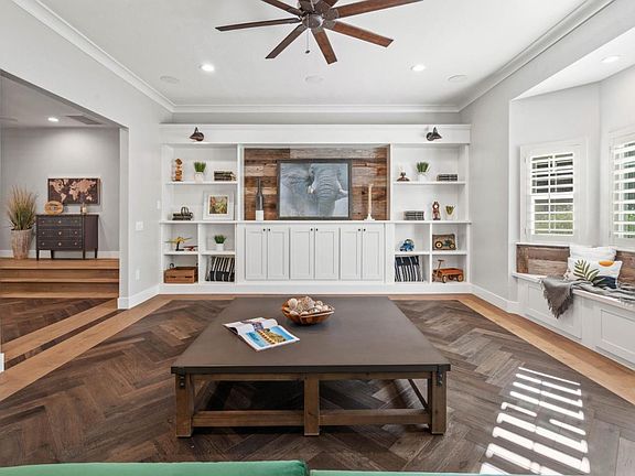 The spacious open floor plan is perfect for both relaxed living and entertaining. Gourmet kitchen, equipped with high-end stainless steel appliances, flows seamlessly into the living room, while the formal dining area & den provide additional space for gatherings. The primary suite is a luxurious retreat, boasting a walk-in closet, a soaking tub, & dual shower.