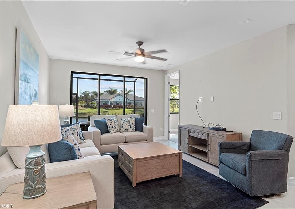 Experience the perfect blend of elegance, comfort, and convenience in this TURNKEY 4-bedroom, 3.5-bath townhome located in the highly sought-after Vanderbilt Reserve community. Designed for effortless living, this home welcomes you with a bright, open family room that flows seamlessly through expansive sliders to an oversized screened lanai with serene lake views—ideal for relaxing or entertaining. Stylish custom tile flooring graces the main living areas, while plush carpeting adds warmth to the bedrooms. The gourmet kitchen is a chef’s delight, featuring stainless steel appliances, a custom tile backsplash, breakfast bar seating, and a built-in desk for added functionality. The first-floor owner’s suite offers a peaceful retreat with picturesque water views, two walk-in closets, and a spa-inspired en-suite bath. Upstairs, you’ll find three spacious bedrooms, two full bathrooms, and a versatile loft perfect for an office, media room, or play space. Offered fully furnished, this home allows you to start enjoying the Vanderbilt Reserve lifestyle from day one—just minutes from Naples’ beautiful beaches, fine dining, shopping, and top-rated schools.
