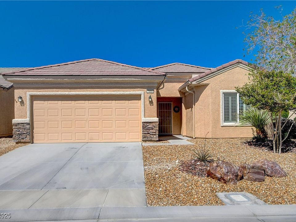 Situated w/in the esteemed 55+ community of Sun City Aliante, this well maintained 3-bedroom residence presents an exceptional opportunity for individuals seeking both an active & tranquil lifestyle. Positioned on a premium corner lot, the property provides enhanced privacy with a block wall & benefits from abundant natural light through four solar tubes brightening the interior spaces. The open concept layout efficiently integrates the living, dining, & kitchen areas, offering an optimal setting for entertaining guests or relaxing in comfort. Each bedroom is suitably sized to accommodate visitors or personal interests, while the primary suite features a private bath & a spacious closet. Community residents have access to extensive amenities including a golf course, recreation center, pool, spa, & diverse social clubs, all contributing to a vibrant & fulfilling retirement environment. This home delivers a compelling option for those pursuing a refined & rewarding retirement experience.