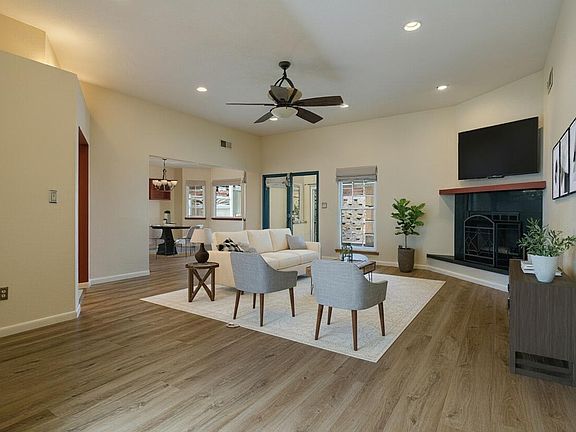 Own your own piece of the American Dream! This single-level 3 bedroom, 1 3/4 bath home features vinyl flooring which was installed this summer, updated kitchen cabinets, solid surface countertops, and stainless appliances--including range, dishwasher, sink, and faucet all installed over the past 3 months. Get ready to enjoy the finished sunroom where you can store the toys, do your yoga and workouts, create a game room or let your imagination roam. Owned solar panels help keep utility bills low. The 2-car garage offers space for parking and storage. Picture the terraced backyard teeming with your favorite flowers, herbs or vegetables. You'll have plenty of time to plan it out before the 2026 planting season. Convenient location, just a few minutes to either Paseo or Montano & Golf Course.