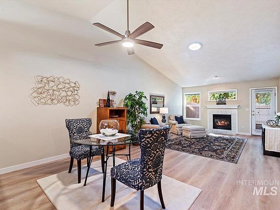 Quality built by Ted Mason Signature Homes. This two bedroom, two bath townhome showcases comfortable living and "lock and go" ease with vaulted ceilings, charming great room living with gas tiled fireplace and renovated luxury plank flooring. The kitchen has many new stainless steel appliances and pull out drawers for easy accessibility. The bedrooms have new carpet and the primary bedroom ensuite is spacious with a window seat overlooking the backyard. The primary walk-in closet is large and roomy. New granite like counters grace the kitchen and both bathrooms. Whether you want to soak in the walk-in jetted tub or take a shower, this townhome has it all. The home has many new renovations with its brand new HVAC unit, newer 40 year roof installed in 2016, counters, flooring, trim and appliances - making it move-in ready. The community clubhouse has a full kitchen and is perfect to hold large gatherings or gather as a community. Centrally located for easy access to Boise Downtown, Boise Greenbelt and Foothills and shopping. Walk to the local grocery store or community library.