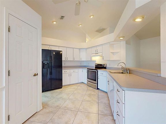 WELCOME TO THIS CHARMING!! 3-bedroom, 2-bath solar heated pool home featuring a spacious great room for gatherings. The spacious living room features plant shelves and upgraded laminate flooring adding warmth and durability to the space. Kitchen features breakfast bar plus separate eating space, included is a Culligan water filtration system in addition to a water softner. The Master bedroom is over sized with slider doors to pool, garden tub and walk in shower. The Great room, the Master Bedroom, the 3rd bedroom and Guest bath all have doors to the pool. The exterior of the home has been recently painted. Other features of the home include inside laundry room, tankless water heater, ceiling fans in all rooms, workbench with vise in garage, exterior landscape lights with timer, walkway and landscape curbing around the house.The pool is solar heated, can be used as a salt water pool but it is not connected, the pool deck has brick pavers. The extra large lanai has an outside cabinet with sink (hot & cold water), exterior landscape lights with timer, walkway and landscape curbing around the house. This home is in a great location, near hospitals, shopping, Equestrian center. A MUST SEE!! Roof is 10 yrs old