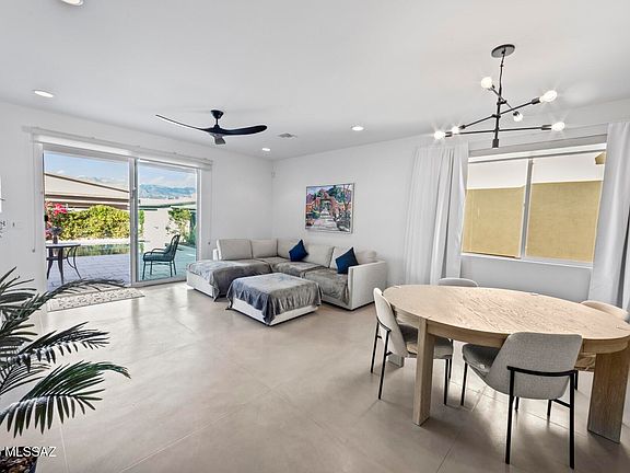 Modern Styling with High ceilings this 3 bedroom, 2 bath Pepper Viner home located near Udall park. Gourmet kitchen with Stainless steel appliances, quartz counter tops and breakfast bar. Open floor plan with dining area and living area. Covered patio that overlooks private swimming pool, patio with gas firepit and landscaped backyard. A perfect retreat at the end of the day or to entertain friends on the weekend.Enjoy the spacious primary bedroom suite, including a primary bath with double vanity and walk-in shower. Conveniently located near shopping and dining. A quick trip to Sabino Canyon or Mount Lemmon. A great place to live!**Lizards on backwall do not convey**