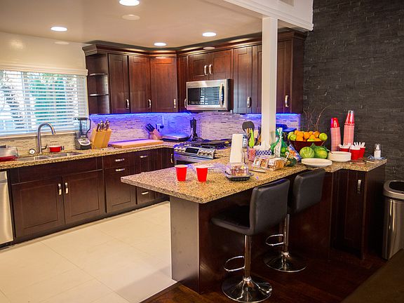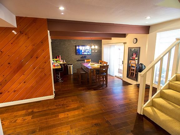 Imagine yourself in a lovely home with an open floor plan yet need a little bit of separation? Then you may want to check out this jewel situated on a cul-de-sac, close to schools. This is a split-level open floor plan. It has a fully remodeled kitchen with granite countertops, cherry cabinetry, Samsung Chef- Collection stove, motion- sensor faucet; a remodeled dining room with exquisite dark stone wall decorum. Behind that is a game room with access to the back yard. The first level also includes a guest room, half bath, laundry and garage. Just a few steps up is a large living room which opens to the spacious backyard all decked out for entertainment. Next up is the master bedroom and bath as well as 2 additional bedrooms, all with custom closet organizers. The hall bath is newly remodeled with a Jacuzzi-bathtub. Just a few steps above is a second, huge living room with a the European style balcony, a fireplace and a majestic view of the entire valley -- very cool at night. There are many more upgrades--to mention a few: solar panels, designer curtains in each room, custom tri-level blinds filtering the sun rays . . and the rest of the features and upgrades await to be seen. Stop by and discover for yourself if this is the house for you!