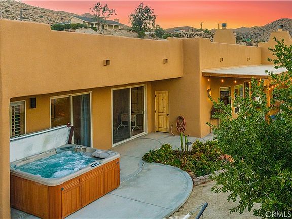 AVAIL SEPT 15th - Nestled in the hills of Yucca Valley near Pioneertown, this fully furnished Santa Fe Boho Modern home offers a serene desert escape with breathtaking panoramic views. Designed for comfort and style, this spacious residence is available 6-12 month lease. The home features a private hot tub overlooking the Joshua Tree Basin, perfect for enjoying starlit nights in total relaxation. The expansive primary suite includes a California King bed, en-suite bath with a walk-in shower, an indoor jacuzzi, and private patio access. Two additional bedrooms, each with queen beds, share a full bath and offer beautiful desert views, while a bonus room serves as a nursery or extra bedroom with a rattan daybed (soon to be twin bunks) and a bassinet. The spacious kitchen boasts a jumbo island, breakfast bar, and premium appliances, seamlessly flowing into the mountain lodge-style living room with a grand fireplace an inviting space for entertaining or unwinding. A dedicated yoga/game room provides a tranquil setting for relaxation, meditation, or family game nights. Outside, the shaded terrace with a fireplace offers a perfect spot to take in the stunning landscape of Joshua Tree Basin. High-speed WiFi and a dedicated workspace make this home ideal for remote work. The laundry room includes a second fridge for additional storage, adding to the home's convenience. Located in a safe, quiet area just minutes from Hawks Landing Golf Course, Pioneertown, and Joshua Tree National Park, this home blends tranquility with accessibility. Nearby Old Town Yucca Valley offers boutique shopping, antique stores, and local dining. The house is also conveniently located equidistant from Desert Regional and Hi-Desert Regional hospitals for traveling medical professionals and schools within 5-10 minute drive!