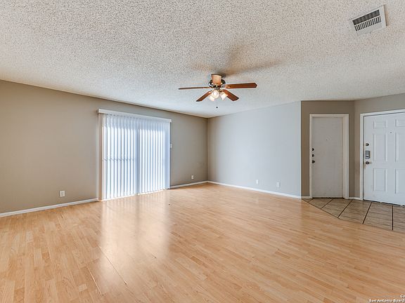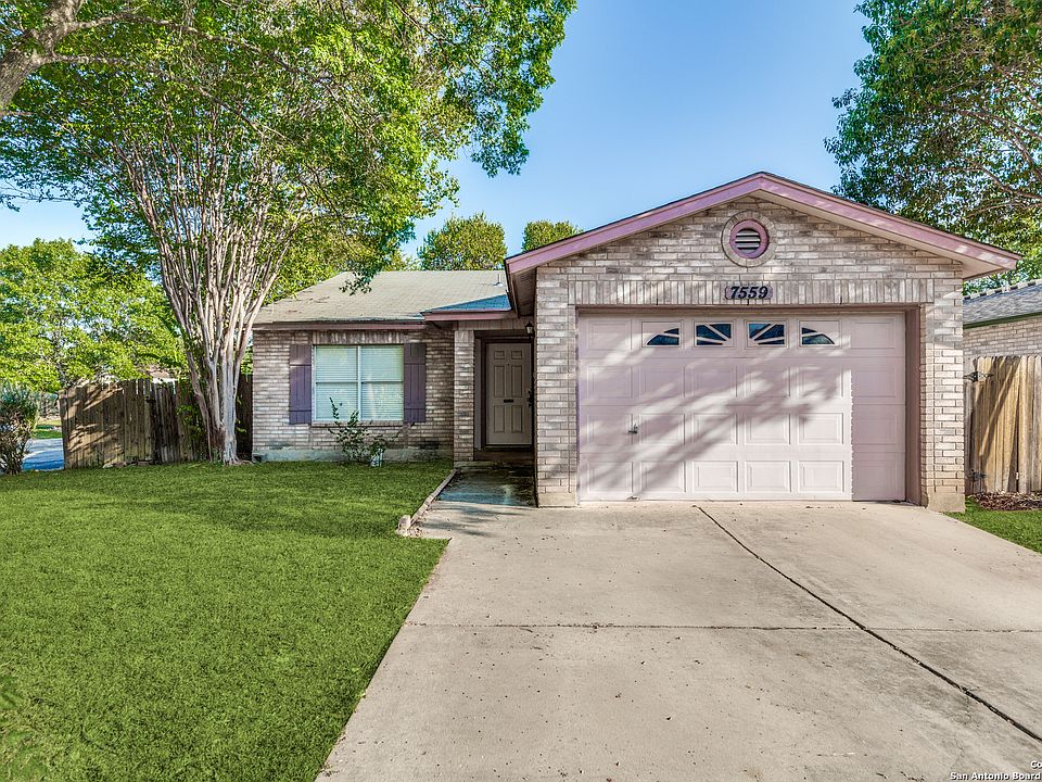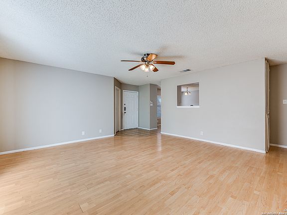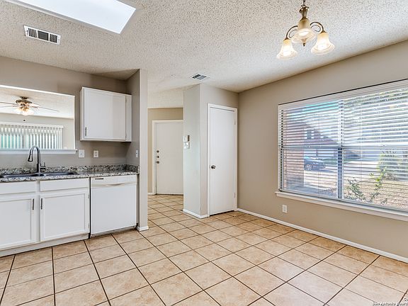 This attractive four-sided brick, single-story home is located in the highly desirable Hunters Chase community. Situated on a quiet corner lot, this property features several mature fruit-bearing trees, creating a serene and inviting outdoor space. The home boasts ceramic tile and laminate flooring throughout-completely carpet-free. Inside, the spacious living area providing a seamless flow between indoor and outdoor living. The open-concept kitchen includes ample cabinetry, a generous pantry, and plenty of workspace, making it ideal for home cooking and entertaining. The primary suite features wood-like flooring, a walk-in closet, and a private en suite bathroom for added comfort. With 3 bedrooms and 2 full bathrooms, this home provides the perfect balance of functionality and style. Whether you are seeking a comfortable primary residence or a solid investment opportunity, this property delivers both charm and value in one of San Antonio's most popular areas. Just minutes from I-10, Loop 1604, UTSA, La Cantera, and The Rim.