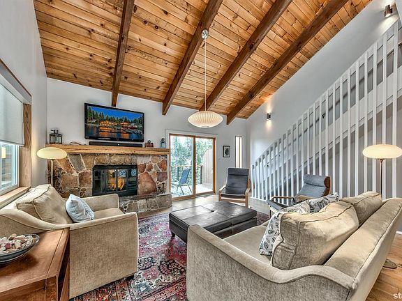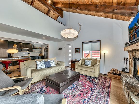 This beautifully updated condo with attractive modern design features 2 bedrooms with a cozy loft. Step into an inviting living space with high vaulted open beam ceilings and fashionable rustic laminate flooring. Take in the captivating expansive valley view showcasing stunning morning sunrises as you get the sensation of the earth falling away beneath you. A stylish open kitchen adorned with quartz countertops, subway tile backsplash and brushed nickel hardware is made complete with Kitchenaid and Whirlpool stainless steel appliances, and a zinc topped breakfast bar. An elegantly designed full bathroom completes the living level. Below reside two bedrooms, one with an adjacent private deck, a second full bathroom, a laundry closet brilliantly disguised by an artful barn door, and a spacious mud room with convenient second ground floor entry. Other notable upgrades include a new furnace, tankless water heater, and LED canned lighting throughout. Sold fully furnished!