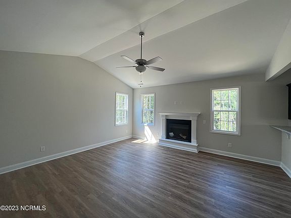 Covered Front Porch leads into foyer with Guest Bedroom w/ WIC to your left. Go past the full guest bathroom into the great room with electric fireplace. Kitchen boasts a HUGE WALK-IN PANTRY, large center island, granite counters, and spacious dining area. Dining Area gives access to back covered deck.