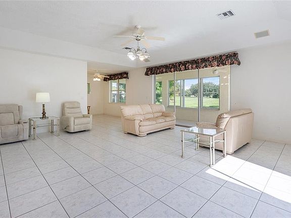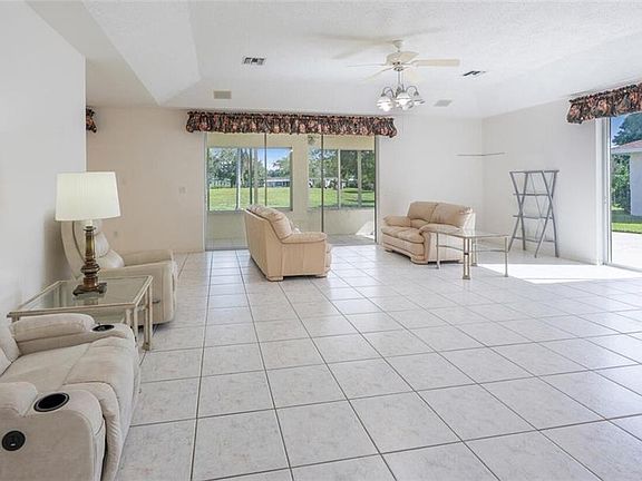 In addition to the 1,630 s/f under air, this attractive 2BR/2BA home has a 296 s/f Florida room and a 216 s/f hobby room. With ten-foot-high tray ceilings, tall doorways, and an open floor plan, the home feels extremely spacious inside. Light from the lanai spills through the oversized sliding glass doors and keeps the main living area well-lit throughout the day. There is tile flooring throughout with pastel inflections. The Master BA features dual sinks, a long vanity, and a walk-in shower with ornate glass work. The walk-in closet in the Master BR is designed to accommodate a sizable wardrobe. The back windows have electric shutters and the front windows are impact resistant. The appliances in the kitchen are stainless steel. The large back patio is perfect for grilling and the stylish front patio features custom tile work. Along with the two-car garage, the home has a horseshoe-shaped driveway with parking space for multiple vehicles. There's a well for lawn watering and a fenced exterior space for additional storage (kayaks, gardening tools, etc.). Riviera Golf Estates is a 55+ community conveniently located a short drive from downtown Naples. The community has one of the lowest HOA fees in Naples: only $144/mo. (includes internet). There are excellent community amenities, including a large heated saltwater pool with lap lanes, tennis/pickleball courts, bocce/shuffleboard courts, exercise room, billiards room, and a large clubhouse with an active social calendar. The same family that built the home in 1997 has resided there until now. This is a special property!