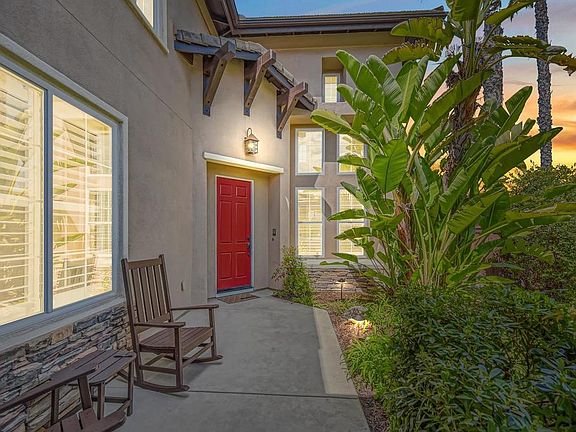 Sitting on one of the largest lots in the neighborhood measuring at 11,317 sqft, within a gated community in Rolling Hills Ranch, and has no Mello-Roos, this 5-bedroom + loft and 4.5 bathroom home boasts luxury and comfort. The property has newer exterior paint and is a true oasis, surrounded by lush, mature landscaping and offering a putting green, outdoor fire pit, built-in BBQ, and eating area perfect for entertaining or simply enjoying the serene surroundings. Inside, the home is filled with natural light and features high ceilings, shutters, and has luxury vinyl plank flooring. The gourmet kitchen is a chef's dream, complete with stainless steel KitchenAid appliances, a huge island, and quartz countertops. The first floor boasts the guest suite with an en-suite bathroom, a living room, a dining room, a family room with fireplace, an additional half bathroom, and a laundry room. Upstairs, the primary bedroom offers mountain views from its private balcony, a huge walk-in closet, and a spa-like en-suite bathroom with dual sinks and a tub. Additionally, upstairs you will find a secondary bedroom with an en-suite bathroom and walk-in closet, along with 2 more bedrooms that share a full bathroom. The loft, with balcony access, provides a perfect space for a home office or additional living area. This home is equipped with modern amenities, including paid-off solar panels, solar backup battery, a water softener and purifying system, dual A/C, surround sound, intercom system, and a whole-house vacuum. Located close to schools, parks, restaurants, and shops. Don't miss out on this opportunity!