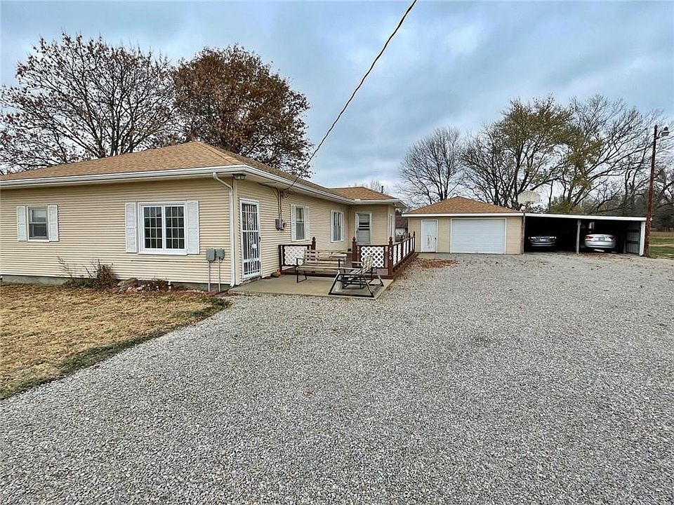 Country Living! Mini ranch on approx. 5.5 acres and a small pond in Arma city limits with lot of possibilities. Each bedroom has a closet. Some hardwood floors under carpets. Open living room, dining room, kitchen concept. Detached 1 car garage & a 2 car carport with ample parking. Useable barn & a pole barn with a corral & loading shoot. Nice patio. Recent Interior paint. No thru traffic on this road! Would you enjoy more space to spread out and maybe have chickens or a cow or a horse?