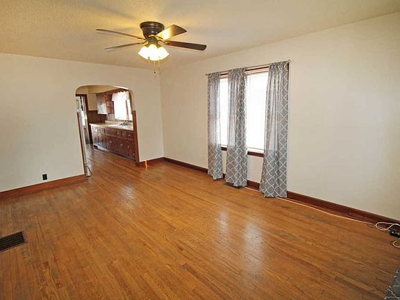 This beautiful North Side home is move in ready! This home features lots of character and space. The charming covered front porch and swing are perfect for relaxing on during summer nights. As you come into the home you're welcomed by the beautiful original oak hard wood floors. On the mail floor you will find two spacious bedrooms and a full bath. As well as a large eat in kitchen. Going downstairs to the partially finished basement you will find a finished room and closet, full bath and laundry. The back yard is fully fenced in with access to the detached garage.