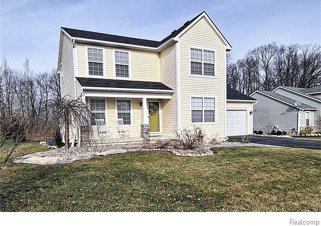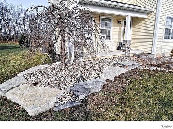 Meticulously kept 2 story open concept home with upgrades throughout. Large master suite with vaulted ceiling, huge walk-in closet and private bath. Ample storage, low maintenance engineered wood floors on main level, new premium carpet and padding on upper level, fresh paint, designer light fixtures, silver hardware and stainless appliances. Upgraded maple cabinets, fireplace and large multi level stamped concrete patio with spa hot tub that over looks wooded lot. Mature trees that are on the subdivision owned easement provide privacy just beyond the large back yard with fire pit. Brand new landscaping includes black granite and limestone slabs around the entire home with mature ornamental trees and shrubs. Full basement, unfinished and ready for your personal touches. Excellent neighborhood with community park, quiet and safe yet only minutes from expressway and town, don't miss seeing this beyond move in ready gem in person!
