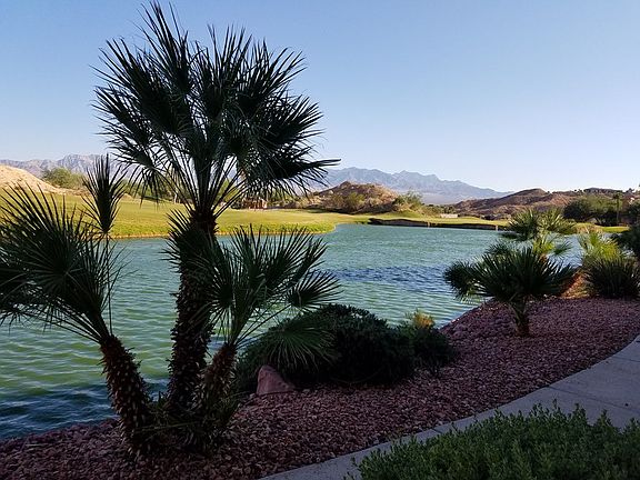 VIEWS GALORE!!! You will have fantastic views of the Enchantment lake and beyond the lake, you will see the beautiful Palmer Golf Course. You will view the beautiful Virgin Mountains in the distance beyond the lake and golf course. This condo is the largest size in Enchantment at 1328SF. Besides the views, one of the best things about this property is that it has a 2 car garage, which is so rare in the Enchantment subdivision. The second best part is that it is a lower level condo, making it so easy to get in and out of. All of the following appliances are included: Dishwasher, Oven/Range, Refrigerator, Microwave, Reverse Osmosis Water Purifier, Water Softener, Garbage disposal, Washer and Dryer. This condo has 2 covered patios and a storage unit. The sellers are original owners. And, of course, living in Enchantment not only gives you the nice association swimming pool in Enchantment, but also the off-site clubhouse/swimming pool/ tennis courts/workout room that Mesquite Vistas has to offer. Be sure to see this condo soon!!!