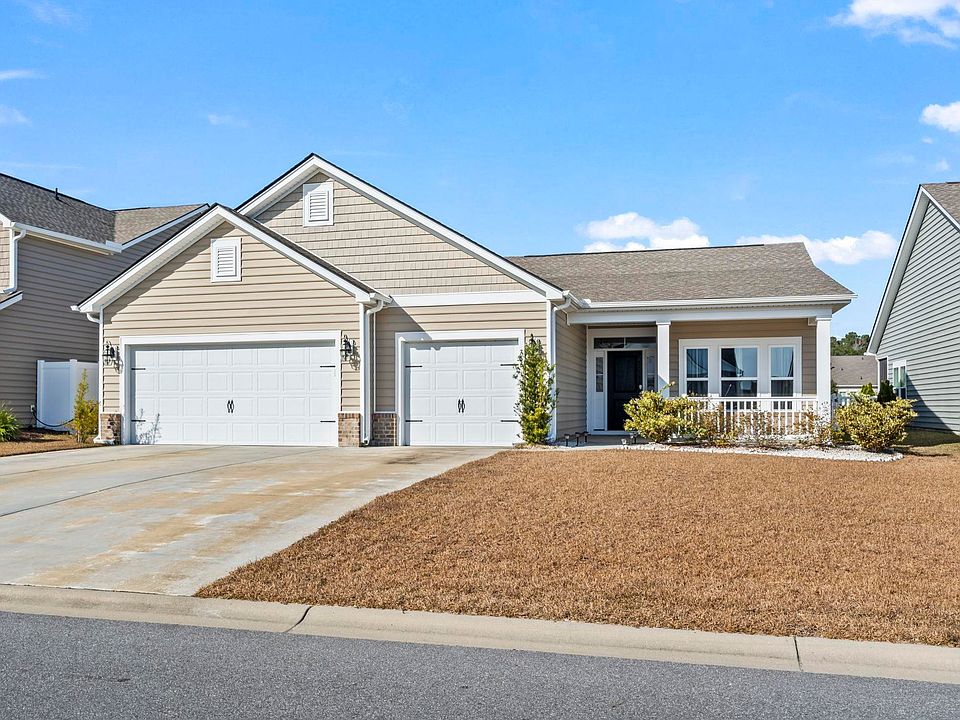 This Muirwood model home plan offers a great floor plan for entertainment! It provides almost 2100 htsqfeet of single level living. As you enter, the formal dining room is open to a 21 x 21 family room. The kitchen features lots of counter space, a breakfast bar and walk-in pantry. The beautiful owner's suite features a large walk-in closet and a master bath which includes a linen closet and walk-in shower. There are two additional bedrooms, full bath and a three car garage. This home has all the upgrades like tile and laminate flooring, granite counter tops in the kitchen, Frigidaire® stainless steel appliances including a gas range, built-in microwave and dishwasher. Also included is upgraded cabinetry with 36" and 42" staggered maple cabinets, Tankless Rannai hot water heater and Mini Split A/C unit in garage. You will also have access to wonderful amenities, including a pool, cabana, and community garden. Forestbrook Estates is Located in the heart of the Forestbrook area, located just minutes from the beach, vibrant shopping centers, restaurants, and entertainment venues.