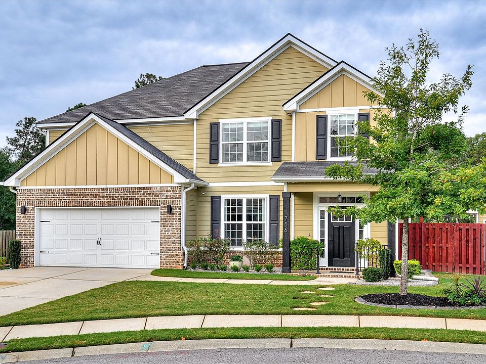 4 Bed/ 2 Bath 2544 Heated Sq/Ft Gorgeous Lakefront house with beautiful view. 4 Bedrooms and 2 Baths all upstairs. Owner's Suite features his and hers vanities, custom built Owner closet, separate shower, garden tub and large walk-in closet. All Bedrooms have vaulted ceilings. LVP flooring throughout ENTIRE HOME. Ceramic tile in Baths and Laundry Room. 1/2 Bath on main floor at the Mud Room. Kitchen features granite counter tops and stainless steel appliances. All appliances included: Range, Microwave, Dishwasher, and Refrigerator. Open floor plan. YEAR ROUND LAWN MAINTENANCE INCLUDED!! Covered rear porch overlooks the lake. Community amenities include sidewalks, Lakefront Walking Trail and Picnic Tables. Pets ok w/ pet deposit.