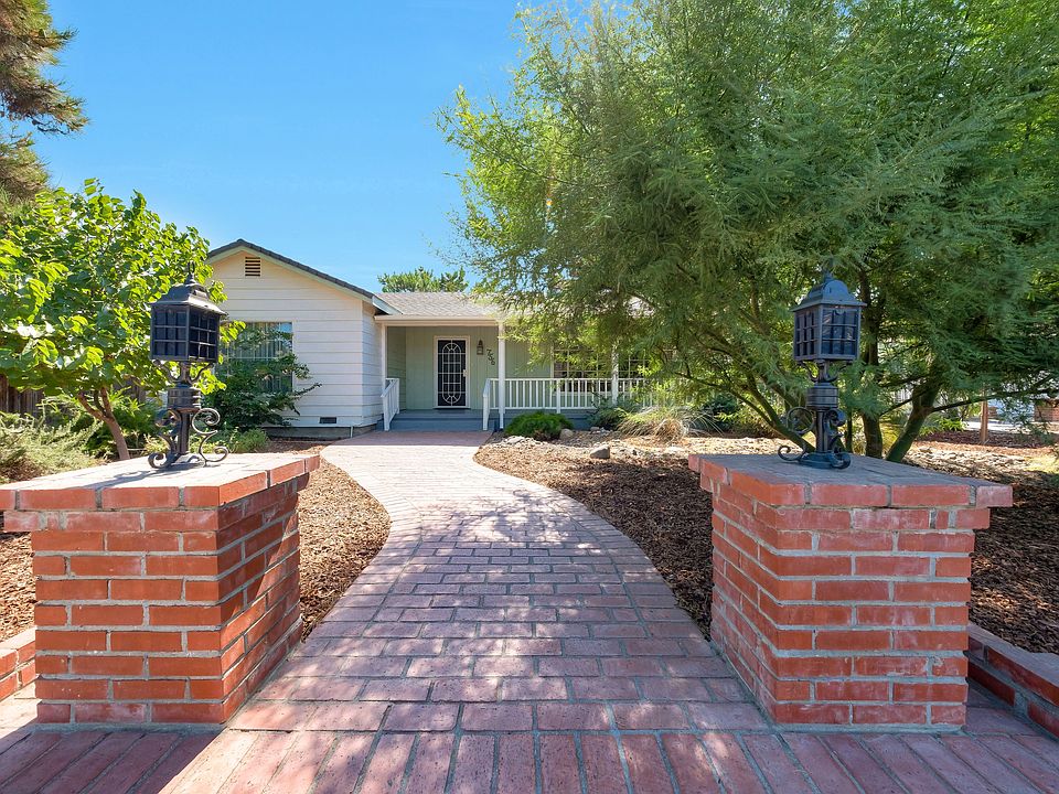 Well cared for ranch style home features both modern amenities and architectural character in a good location. Located within walking distance to Garden Elementary and Cherry Ave Middle School. It has 3 large bedrooms with 2 recently renovated bathrooms. Living room has hardwood floors and a fireplace. The family room has the original cedar paneling and fireplace. The kitchen has recently been remodeled including farmhouse style sink. Indoor laundry and large walk in pantry. Abundant closets and cupboards provide incredible storage. The front and backyard have low maintenance, drought tolerant landscaping. Mature citrus and avocado trees along with raised garden beds are ready for any garden enthusiast. Relax in rocking chairs on the 40 foot front porch or on the shaded back patios. Breezeway with detached two car garage features a pull through back garage door for boat or trailer storage. Extra long driveway. Uniquely situated next to a church so there are no immediate neighbors.