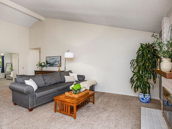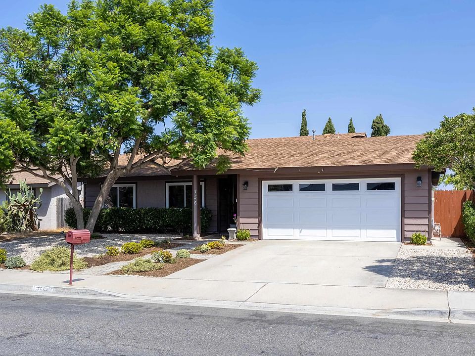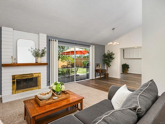 Welcome to this spacious single-level home in San Luis Rey, featuring 3 bedrooms and 2 full baths. The open living area boasts vaulted ceilings, a charming brick fireplace, freshly painted walls, and a cozy dining nook. The kitchen is designed for entertaining, with stainless steel appliances, stone countertops, and luxury vinyl plank flooring that extends into a permitted bonus room—perfect for a home office, game room, or flex space. The property includes a new 50-year roof with leased, energy-efficient solar panels. The backyard, lined with mature cherry and cherimoya trees, includes a powered shed for added convenience. Recently updated landscaping (both front and back) and direct access to the San Luis River bike trail just steps away complete the appeal of this wonderful North Oceanside home.