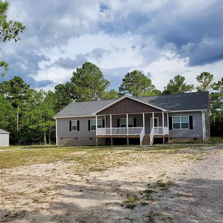 If you are looking for a new home without the hassle of going through the building process, then look no further! This modular home was built last year in a country chic that will satisfy all your country-living dreams. Three bedrooms and an open floor plan with the kitchen, dining room and great room highlighted by accent walls, a fire place and vaulted ceilings makes the living space huge and cozy all at the same time. The spacious master suite boasts a large bath room with a huge shower and walk-in closet that hides a secret passage into the laundry room. You can sit at the kitchen island or the dining room table and see fields, pines and sky forever! With a detached two car garage / storage building you'll have all the room you need to romp and play and rest when the day is done.