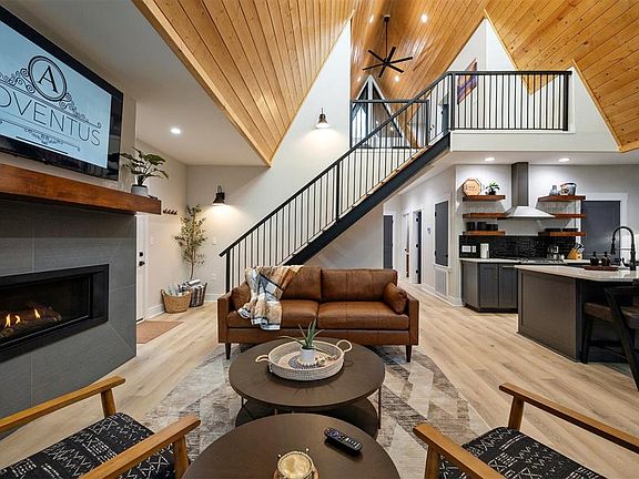 No Fault of the Sellers this home is back on the market! Financing fell through at the last minute! Their loss is your gain! Adventus is a contemporary modern A-frame cabin in Broken Bow. Sitting on 1.3 Acres in the highly sought after Carter Mountain West Subdivision. Cabin features 2 king size bedroom suites with full baths downs stairs and a loft with 4 custom built bunks and a full bath upstairs. Cabin is fully furnished and exudes 5 star quality through out. The primary bathroom has a large soaker tub perfect for relaxation and unwinding from your busy days of activities enjoyed in Hochatown. Gorgeous kitchen area with a gas stovetop range and gorgeous custom cabinets and designer touches galore. The covered first floor deck host a hot tub, plenty of seating for guests, and a TV to provide a captivating outdoor experience with a view. This home is on the rental market and is a perfect STR to build your portfolio.