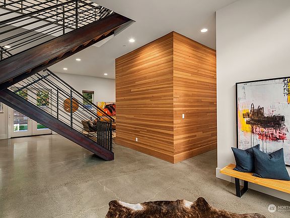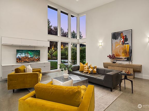 Modern luxury, ideally located on a private and quiet cul-de-sac with close proximity to schools, shopping, Mercer Island Country Club and Pioneer Park. A seamless blend of concrete, steel, wood, walls of windows and dramatic vaulted ceilings. The open concept kitchen opens to both living and dining spaces and is every entertainer's dream with a massive 8 person island. Your guests can visit in luxury with their own main floor guest suite with an en-suite bathroom and access to a backyard oasis that includes an endless swim spa. The upper level features a beautiful and tranquil primary suite with private sun deck and an additional two bedrooms with a shared spa-like bath. This is a must-see home that has been thoughtfully cared for.