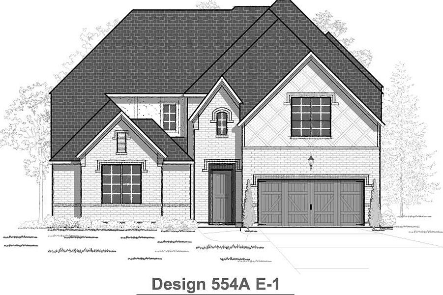 Two-story entry with 20-foot ceiling. Library with French doors. Media room. Family room features a sliding door and fireplace. Kitchen has an island with built-in seating space and a walk-in pantry. Private master suite with a wall of windows. Double door entry to master bath featuring a garden tub, separate glass-enclosed shower and a walk-in closet. Upstairs game room. Covered backyard patio. Mud room. Three-car garage.