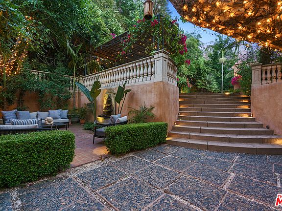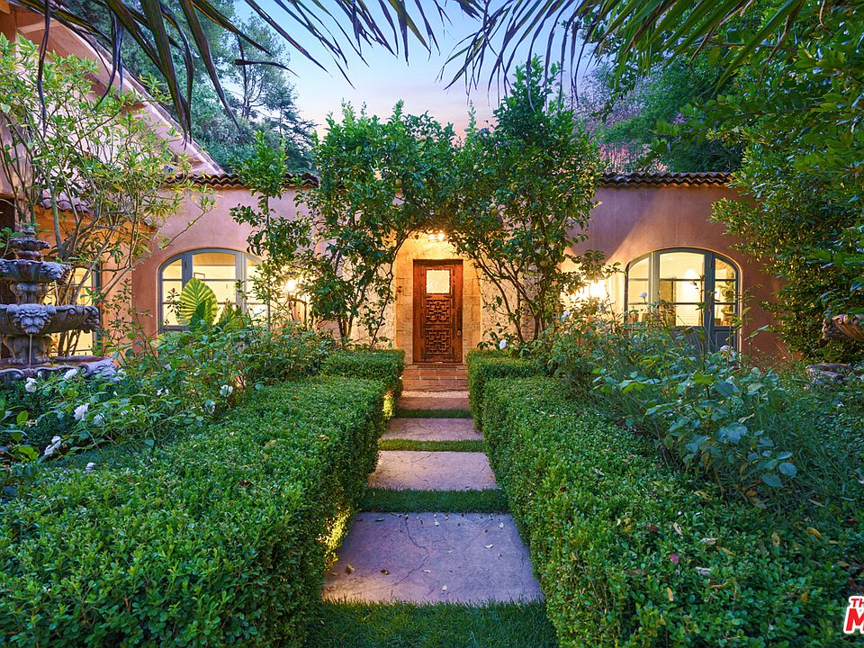 Rare secluded & serene Nichols Canyon entertainer's compound consisting of a traditional Mediterranean villa, two guesthouses, & a pool above the Sunset Strip. Resting on a plateau in a beautiful canyon blessed w/ eternal sunshine & gentle breezes, the tucked away gated property is extremely private, surrounded by mature natural trees in a Hollywood Hills celebrity enclave. The majestic retreat can easily accommodate a recording studio, office, and/or media center. The one-story main house, w/ gorgeous master suite & 2 additional en-suite bedrooms, powder room, large public rooms, & courtyards, is perfect for entertaining. The formal entry flows to the dramatic large living room & built-in Bar area where French doors lead out to the private patios & swimmer's pool. Cooks will adore the gourmet eat-in kitchen. The separate pool house includes a fully outfitted kitchen, marble bathroom, & a living area. 3 car attached garage. Centrally located close to studios. Click VIRTUAL TOUR