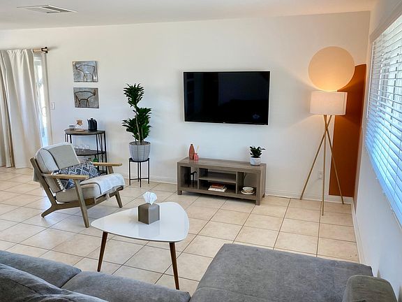 Welcome to your new home! This charming two bedroom, one bath house has been fully remodeled. The home is being offered furnished for a convenient renting experience. The well-appointed kitchen includes modern shaker cabinets and new quartz countertops. The new stainless steel fridge, dishwasher, oven/stove, and microwave are all included in the lease. Step in to luxury and comfort with the renovated bathroom offering high design and all new fixtures. Stay comfortable in all seasons with the efficient evaporative cooling system, powerful wall heater, and brand new energy efficient windows. Enjoy a spacious, fully fenced backyard and relaxing covered patio. The large two car garage offers convenient parking, a modern washer and dryer, and an additional refrigerator. With the large shed in the backyard the home provides ample storage. Nice neighborhood! Both next door houses recently remodeled as well. Close to shopping, Joshua Tree National Park, and easily commutable to 29 Palms Military Base. Looking for responsible tenants who take pride in their home. 2.5x monthly rent income requirement. Pets allowed upon approval. Tenant pays for Water, Gas, Electric, Cable/Internet. Owner pays for Trash. No Smoking. Security deposit due at signing. Furniture Included: Main Bedroom - King bedframe/headboard, New and high quality memory foam king mattress, 2 bedside tables, Large dresser, Wall art Guest Bedroom/Office - Queen bedframe/headboard, New and high quality memory foam queen mattress, Powered adjustable desk, Desk chair, Closet organizer, Wall art Living - Sectional couch (W/ pullout full bed), Living room chair, Coffee Table, Wall mounted 55" flat screen smart TV, TV stand, Faux Plant, Plant Stand, Corner Lamp, Bar Cart, Wall art, Wall mirror Dining - Dining table, 4 Dining chairs Misc. - Curtains/Curtain rod, Blinds, Bathroom mirror, TP holder, Shower curtain, Towel rack, Patio table with bench seating, 8 hallway shelf organization baskets Appliances - Double door refrigerator, gas oven/range, microwave, dishwasher, garage refrigerator, front load washer and dryer *Any furniture you do not want included may be stored in the backyard storage shed for the duration of the lease. Owner pays for trash. Tenant pays for all other utilities. Pets allowed upon approval.
