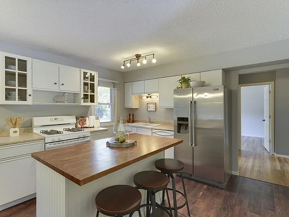 Great five bedroom home on a sleepy cul-de-sac! Extraordinary, fully-fenced yard with patio and fire pit, mature, trees and landscaping. Bright, updated kitchen with center island and breakfast bar, gas range, large sink, and eat-in dining area. Kitchen windows overlook backyard and patio doors join kitchen to large deck and backyard. Finished lower level family room with fireplace and walk-out access to patio and backyard. Convenient access to parks, trails, and playgrounds., Directions 80th St to Ideal, North to 75th St East (right) to Inman Ave, South (right) to Inman Ct, left to home.